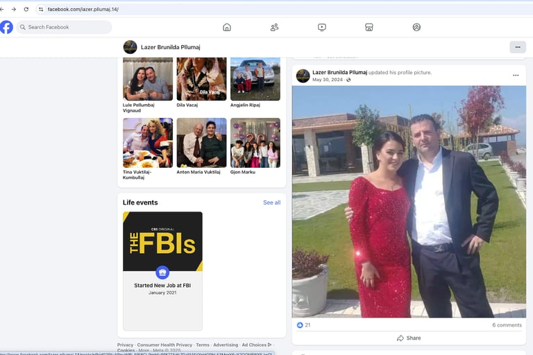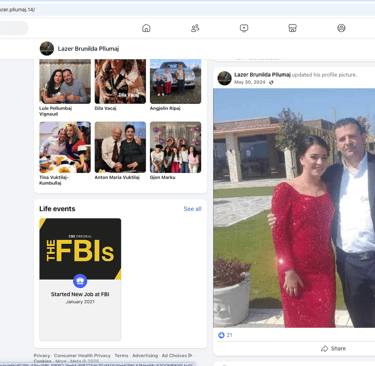 However, here (at least on a computer browser--cellphone layout for the time being may force the images to be at the very bottom) are pictures from Plumja/Pllumaj's Facebook page--https://www.facebook.com/lazer.pllumaj.14/ (as of 13 May 2025)--of Plumaj claiming to work for the FBI starting in 2021 and being in the lobby of 83 Park Terrace West in January 2023 (when Scott was halfway around the world):